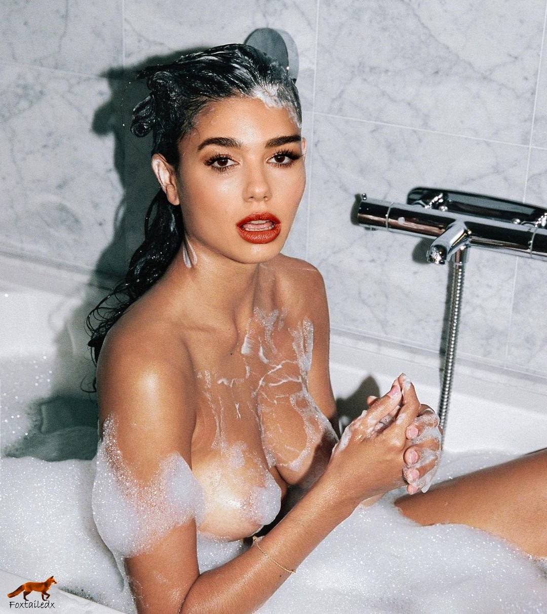 Completely naked music diva shows off her slim waist and beautiful boobs